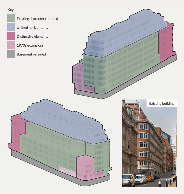Central to these ambitions and our approach at Harmsworth House is a robust sustainability strategy. Retrofitting the existing building is therefore at the heart of our proposals, with an aim to retain 61% of the original building’s superstructure, celebrating the historical appearance of the old building, while embracing the new and sustainable.